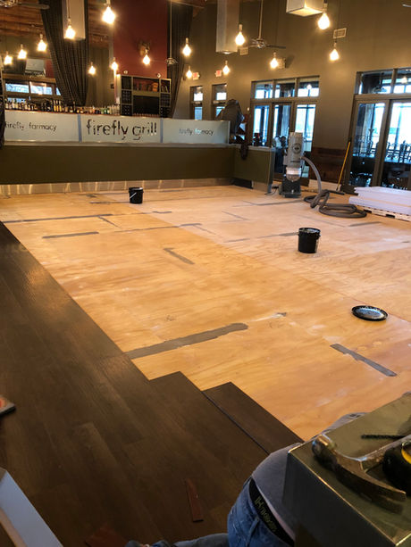 AR Flooring enhanced Firefly Grill's modern, eco-friendly atmosphere with the installation of luxury vinyl plank (LVP) flooring. The LVP, designed to mimic natural wood, combines durability with style, offering a water-resistant, low-maintenance solution that withstands high foot traffic. The new flooring seamlessly integrates with the restaurant’s contemporary design, adding warmth and elegance to the dining experience.